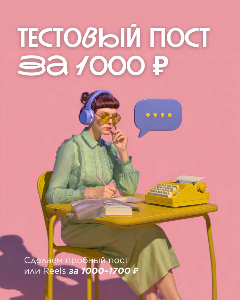Поэтому сделали формат, с которого комфортно начать — без риска и лишних обязательств. Пробный пост или Reels — всего за 1000–1700 ₽. Это возможность протестировать, как может выглядеть ваш аккаунт, если им занимаются специалисты. Вы сможете понять: Без обязательств на долгосрочную работу, просто тест, после которого у вас появится ясность: идём дальше вместе или вы хотите по-другому. Если формат откликнется — вы уже будете понимать, что ожидать от сотрудничества.