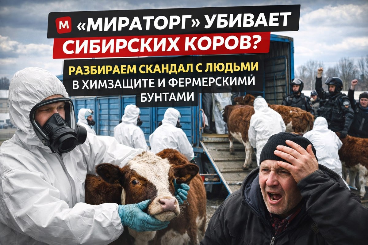 химзащиты под конвоем полиции забирают коров у фермеров. Животных грузят в машины и увозят на утилизацию. Фермеры перекрывают дороги, плачут в камеру и говорят, что чиновники уничтожают дело всей их жизни. А в соцсетях моментально нашли «виноватого» — агрохолдинг «Мираторг». Звучит как классический сюжет про «олигархов, давящих мелкий бизнес». Но так ли это на самом деле? Давайте разбираться по порядку. 🌍 Читайте нашу статью на Яндекс Дзен и подписывайтесь! 📞 +7 (343) 253-00-96 📩 edulex@1pervomay.ru 🌐 1pervomay.ru/obuchenie 📲 Первомай в MAX