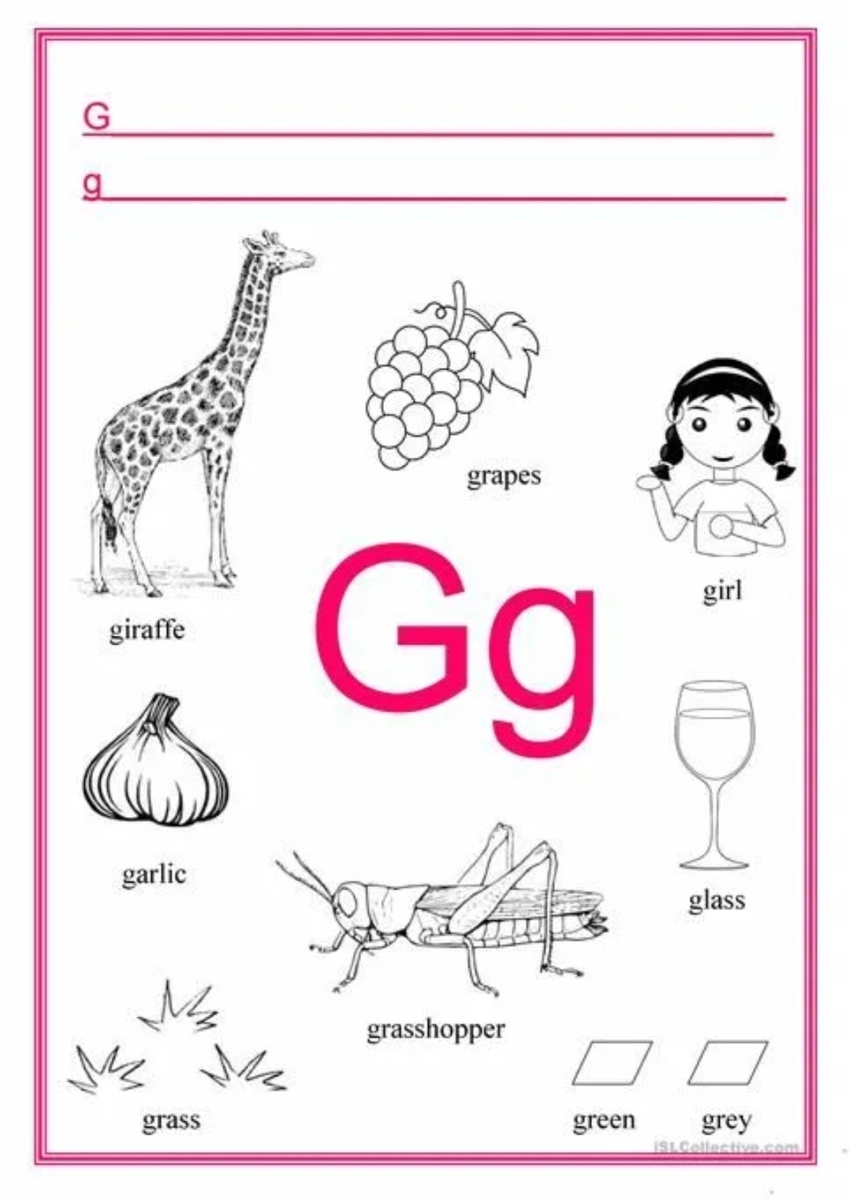 В далёкой стране под названием Алфавия жила-была буква G. Она была седьмой по счёту и относилась к согласным. У G было два голоса: твёрдый и мягкий.