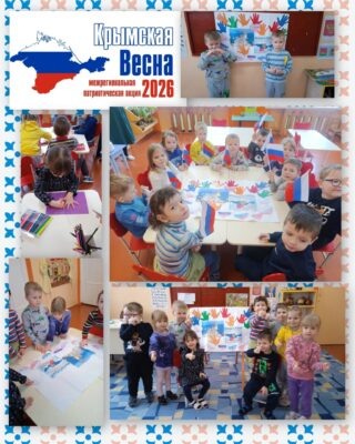 Тематический день в детском саду «Журавушка» превратился в настоящий урок истории для самых маленьких. Поводом стала годовщина воссоединения Крыма с Россией — событие, которое педагоги решили приблизить к детскому пониманию через живой разговор, творчество и совместный труд. Воспитатели рассказали ребятам о полуострове: о его богатой истории, народах, которые здесь жили, и культурных традициях, которые передаются из поколения в поколение. Никаких сложных слов — только истории, которые хочется слушать. Главным событием дня стала работа над коллективной аппликацией-стенгазетой «Мы вместе!». Под руководством воспитателя Г.Н. Кривоносовой каждый ребёнок приложил руку — в буквальном смысле — к созданию общей работы. Цветная бумага, клей, детские ладошки и искреннее старание сложились в трогательный плакат, который стал маленьким символом большой дружбы. Акция «Крымская весна 2026» объединила детские сады и школы из разных регионов страны. «Журавушка» присоединилась к ней не формально, а с д