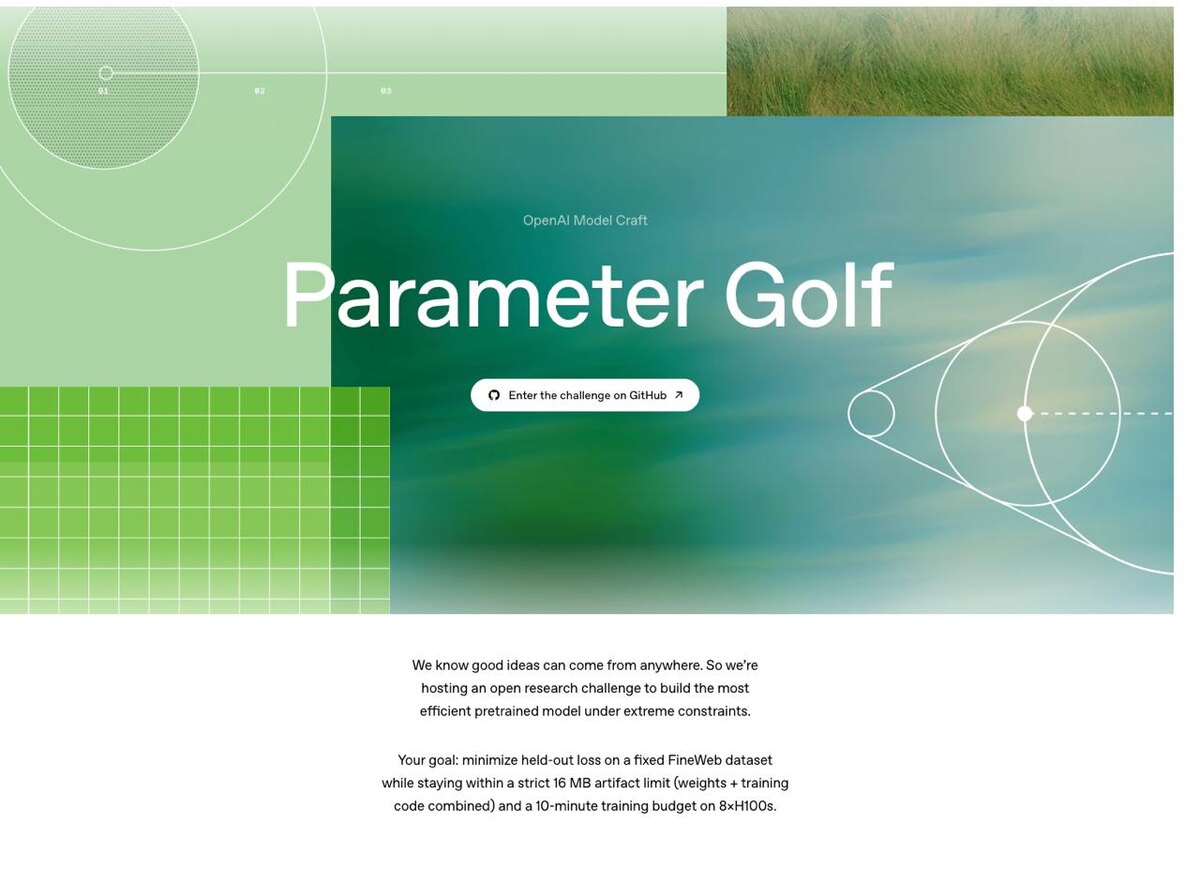 Компания открыла публичное соревнование для исследователей с крайне жесткими техническими ограничениями. Участникам предстоит создать максимально эффективную языковую модель, при этом размер весов вместе с кодом для обучения не должен превышать 16 МБ. На сам процесс тренировки отводится строго до 10 минут на кластере из восьми видеокарт H100. Эффективность алгоритмов будет оцениваться на сете FineWeb. Цель челленджа - поиск нестандартно мыслящих инженеров. Авторы лучших проектов получат приглашения на собеседование. Дополнительным стимулом станет призовой фонд в 1 млн. долларов, который распределят в виде грантов на аренду копьюта у провайдера Runpod. На GitHub уже опубликованы базовые решения (https://github.com/openai/parameter-golf), проверочные скрипты и публичный лидерборд. Принять участие в конкурсе можно до 30 апреля. https://openai.com/index/parameter-golf/ #news #ai #ml #openai #chatgpt