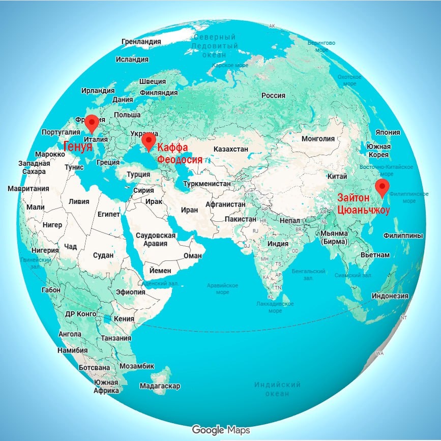 Где Генуя, а где Зайтон. По сравнению с расстоянием, которое преодолевал генуэзский чиновник в город-порт рядом с Тайванем, отправиться в Каффу было как за угол за хлебом сходить. Собственно, за хлебом и ходили: каждая пятая лепёшка в Генуе была поджарена из муки, привезённой с территорий современной Кубани. Масштабы генуэзской торговли и место в ней Каффы мы будем обсуждать в понедельник. Материала настолько много, что я всерьёз переживаю, уложимся ли мы в два часа. Но я верю, что слушатели люди крепкие и выносливые😉 Потому лекция и бесплатная, что могут быть непредсказуемые ситуации😎 Официальный анонс будет завтра. А пока что поставьте себе в календаре галочку на 7 вечера в ближайший понедельник. #маша_и_движ