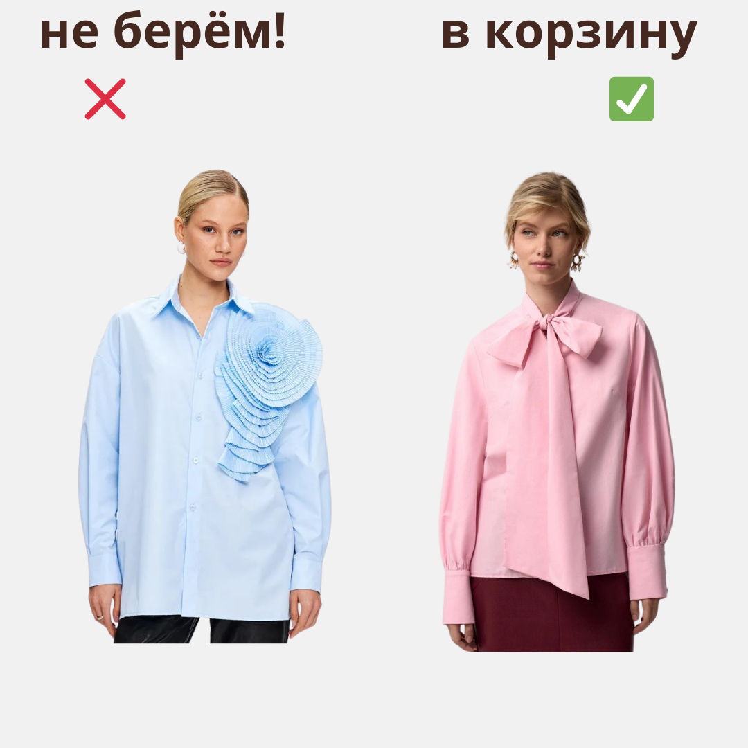 Пробежимся по полкам наших гардеробов в поисках изживших себя трендов. В своё время они были настолько яркими и массовыми, что сейчас уже выглядят как антитренды. Но такие вещи до сих пор продают! Сегодня мы подскажем, что этой весной уже точно не стоит покупать, а также расскажем, на что можно заменить закатившийся тренд. Рубашек с огромной розой на груди было так много везде — на улицах, в магазинах, в соцсетях и на маркетплейсах, — что глаз на них уже не глядит. То же самое касается и моделей с большими оборками на плече. Сейчас лучше выбрать что-то более лаконичное и базовое — например приталенную рубашку или вариант свободного кроя в полоску. А если хочется чего-то яркого, с деталью, то обратите внимание на рубашки и блузы с бантами и лентами, а также модели в горошек. Мы носили эти куртки слишком долго — ну, действительно, они были популярны лет пять назад, и были почти у всех. Пора обратить внимание на новые модели и силуэты. Из похожих по крою вариантов сейчас актуальны стёган
