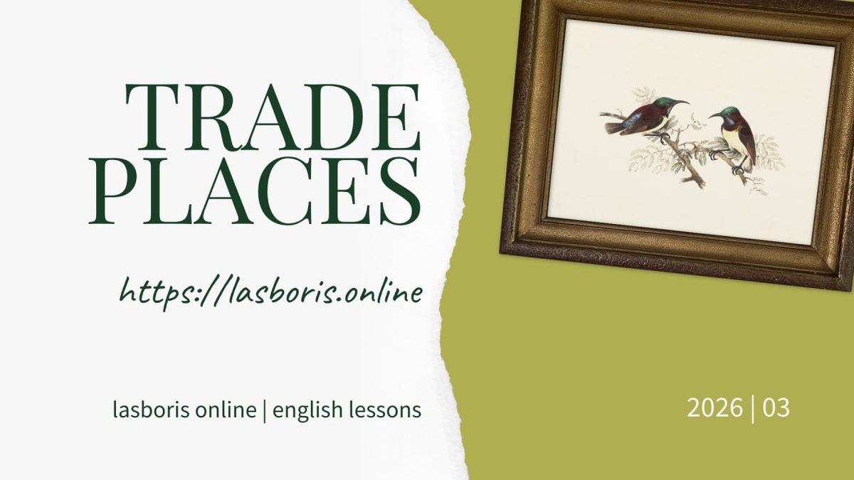 9️⃣6️⃣ Поменяться местами {идиома}. ▶️ To switch to the spot, role, or position that another person currently is in. Illustrative Examples 〰️ I want to talk to the people at the other end of the table. Would you mind trading places? 〰️ Many people say that they would gladly trade places with a celebrity, but I doubt they would enjoy the constant attention. Reverso 〰️ Sometimes it's good to trade places and gain new insights. Иногда полезно поменяться местами и получить новый взгляд на вещи. 〰️ We can trade places and learn from each other's strengths. Мы можем поменяться местами и учиться на сильных сторонах друг друга. 💡 ЗАПИСАТЬСЯ НА КУРС АНГЛИЙСКОГО ОНЛАЙН 👨🎨 supa-lasboris