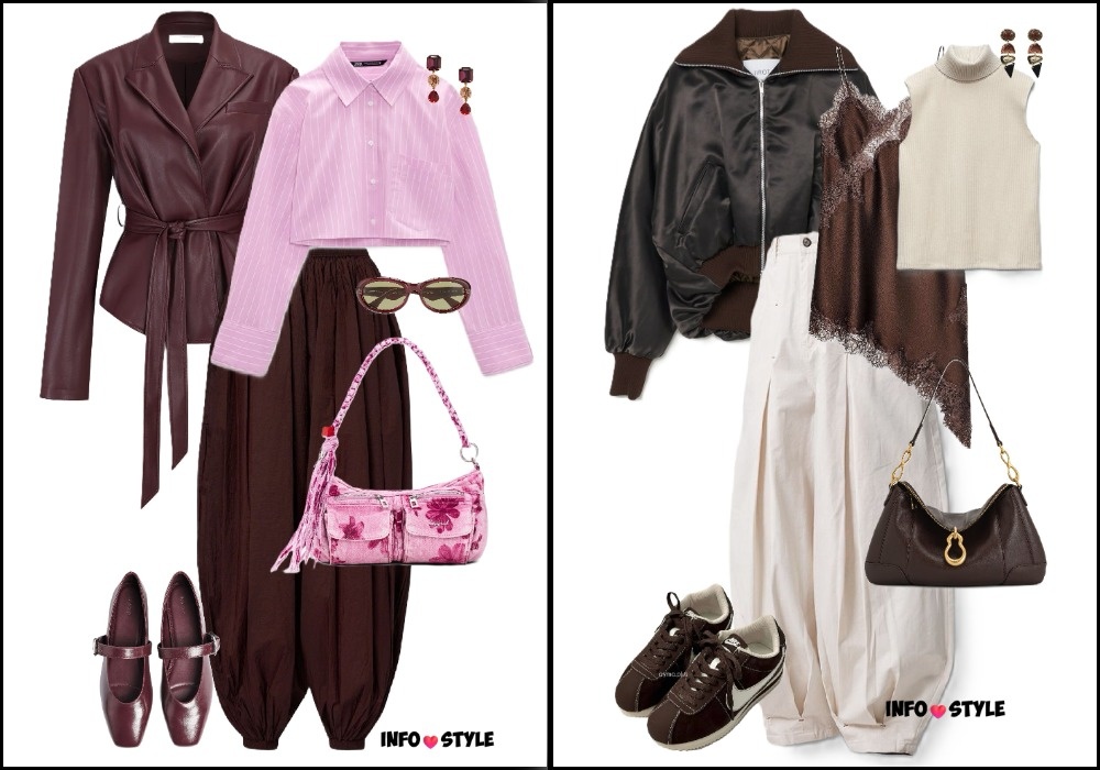 Актуальные комбинации с брюками-аладдинами: