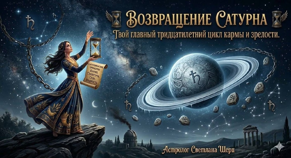 : экзамен на внутреннюю зрелость Если Юпитер — это расширение и удача, то 👁Сатурн — это структура, границы и время. В астрологии его называют «Великим Малефактором» или Строгим Учителем. 🤝Раз в 29–30 лет он возвращается в ту же точку, где был в момент вашего рождения. Это не время для подарков. Это время инвентаризации вашей жизни. Сатурн убирает всё лишнее, шаткое и фальшивое, оставляя только то, что имеет прочный фундамент. Сатурн движется медленно, и его проверка длится около 2–2,5 лет. Каждый цикл — это новый уровень зрелости. ⏳Первый цикл: 28–30 лет (Прощание с детством) Это самое известное и часто болезненное возвращение. Сатурн спрашивает: «Кем ты стал на самом деле, когда перестал быть просто чьим-то ребенком?» Что происходит: Разрушаются иллюзии. Часто случаются первые крупные разводы, смены профессий или, наоборот, вступление в брак и рождение детей как акт ответственности. Цель: Стать взрослым. Перестать винить родителей и обстоятельства. Опереться на себя. Что перезапу