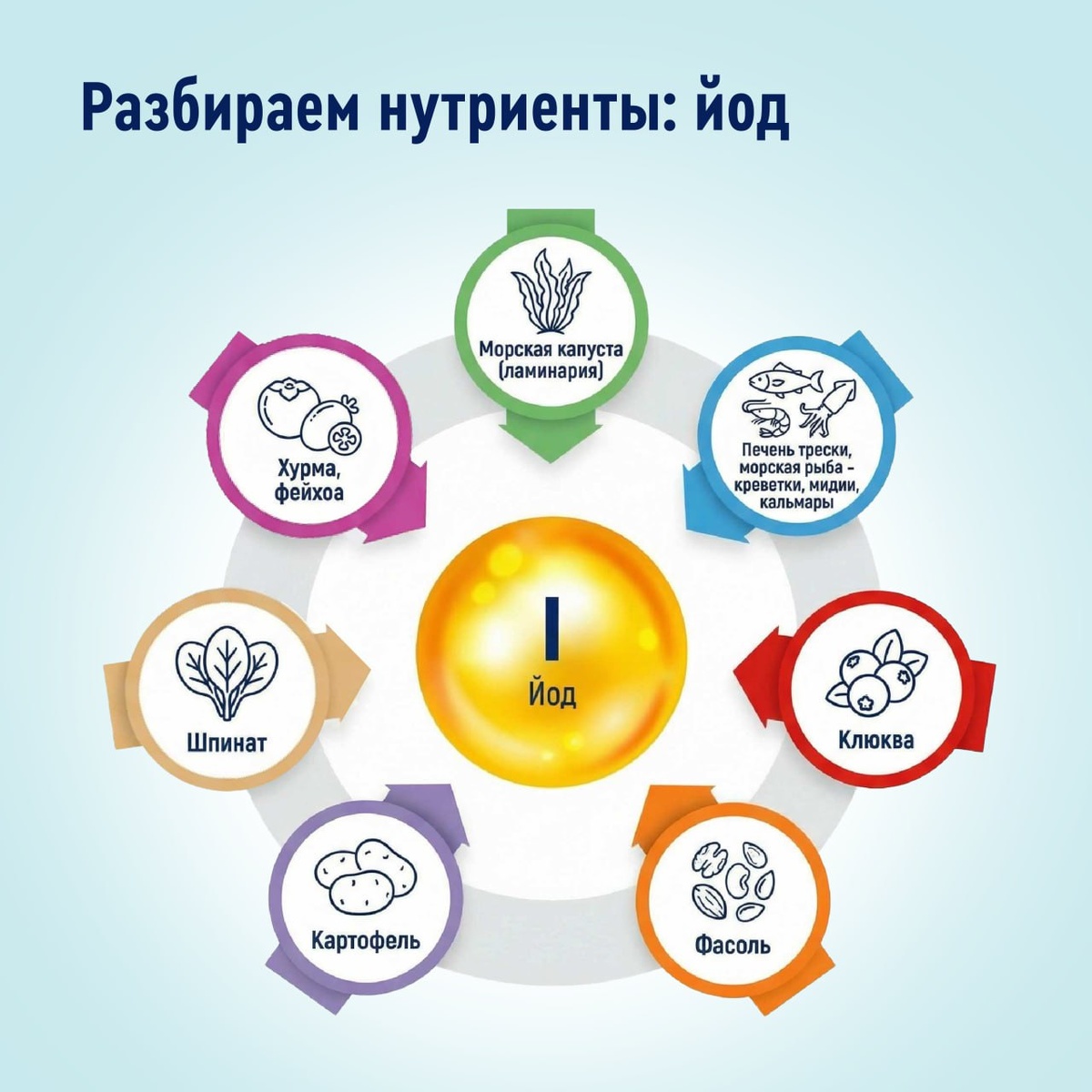 Кратко: йод необходим для работы щитовидной железы, которая управляет обменом веществ, иммунитетом и энергией. Дефицит йода встречается у жителей России существенно чаще чем его избыток. Но при онкозаболеваниях важно знать нюансы: в каких случаях йод нужен, а когда может навредить. К деталям, далее, как и всегда. Йод – это «топливо» для щитовидной железы. Из него на 65% состоят гормоны тироксин (Т4) и трийодтиронин (Т3). Эти гормоны регулируют энергетический обмен, температуру тела, работу мозга, память и внимание, иммунитет, а также рост и развитие клеток. Без йода не происходит практически ни одного обменного процесса. — Сколько йода нужно в сутки? Потребность в йоде зависит от возраста и состояния: - детям до 5–6 лет – около 50–90 мкг в сутки - детям 6–12 лет – 120 мкг - подросткам и взрослым – 150 мкг — Симптомы дефицита йода Нехватка йода развивается постепенно, и ее часто путают с обычной усталостью. Основные признаки: - хроническая усталость, которая не проходит после отд