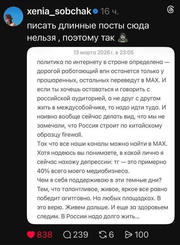 И к слову об изменениях внутри страны. Знаете, переход в MAX, это не только про сохранение коммуникации с аудиторией, как верно подметила Ксения Анатольевна. Это еще и умение подстроиться под новые условия рынка. Первым запрыгнуть на эту волну, первым почувствовать, что «оно нам надо». В медиа и рекламе последние лет 20 постоянно появлялись новые каналы продвижения и коммуникаций. Все шли туда и тестили, захватывали свою аудиторию. И побеждал тот, кто сделал это первым в своей нише. Также я сейчас смотрю на MAX, да, я переобуваюсь, и мне не стыдно в этом признаться. Do or die, как говорится.