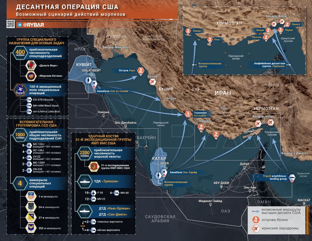 🏳️При этом даже в случае успешной высадки десант где-нибудь в порту или на авиабазе в случае ответной атаки иранцев поддержка с воздуха будет ограничена из-за опасения удара по своим же подразделениям.