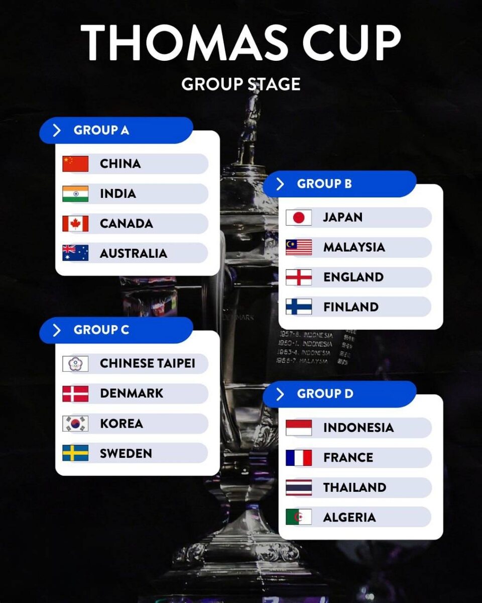 Результаты жеребьевки Thomas & Uber Cup 2026