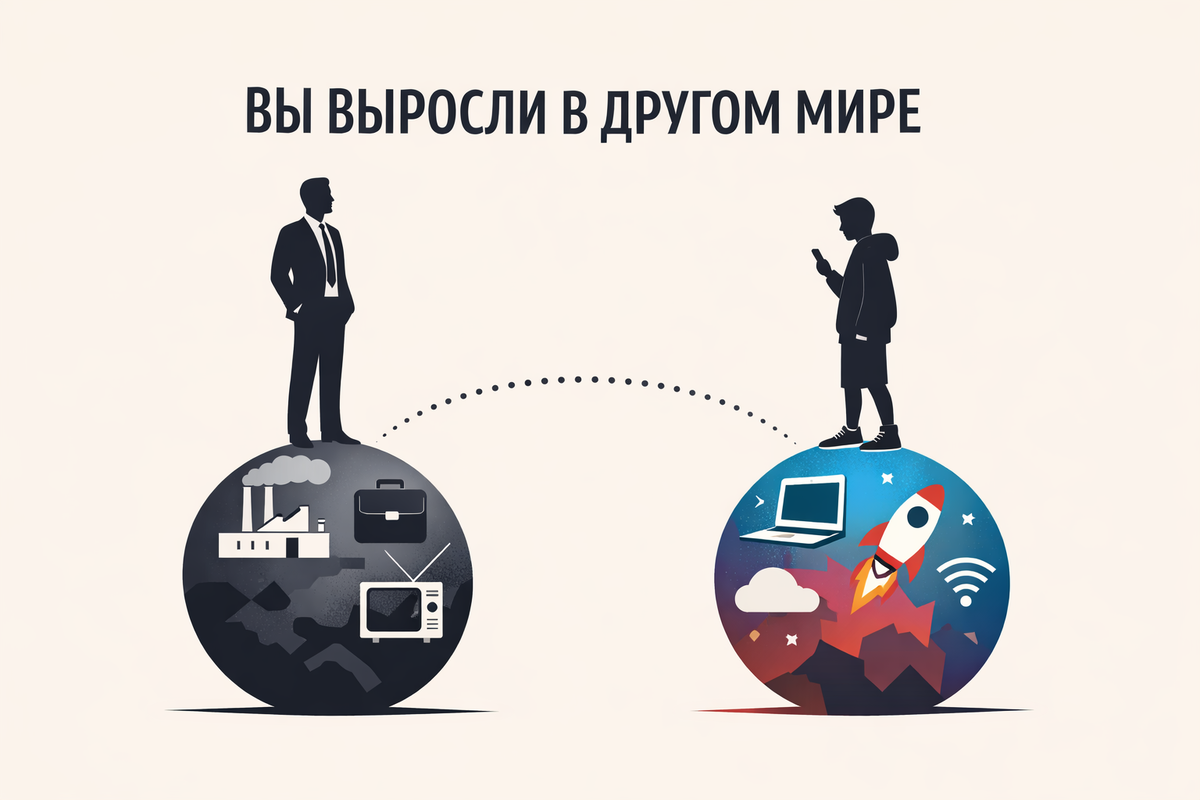 «Вы выросли в другом мире» — это не попытка обидеть. Это попытка объяснить, что карта, по которой взрослые ориентировались, не совсем совпадает с той местностью, по которой приходится идти сейчас.
