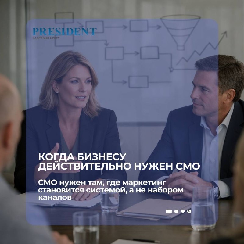 💼📊 Директор по маркетингу — когда пора нанимать и за что платить Не каждой компании сразу нужен CMO. Но есть сигналы, что бизнес вышел на этап, где без стратегического маркетинга дальше расти сложно 💎 Маркетинг уже не про “запуск рекламы” Появляется необходимость управлять каналами, бюджетом и воронкой как системой, а не отдельными инструментами. 💎 Есть команда или подрядчики Когда маркетологов становится несколько, нужен человек, который выстраивает процессы, приоритеты и контроль результата. 💎 Рост замедляется Лиды есть, каналы работают, но масштабирования не происходит — требуется пересборка стратегии. 💎 Выход на новый уровень Новые рынки, продукты, позиционирование — здесь нужен управленец, а не только исполнитель. 💵За что платят директору по маркетингу — За стратегию, а не за настройку инструментов — За управление бюджетом и эффективностью каналов — За рост ключевых показателей: выручка, доля рынка, бренд — За команду и процессы внутри функции 📌Директор по маркетин