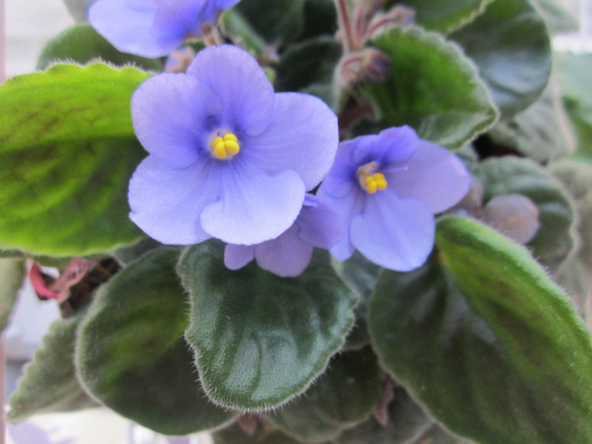 Но не только каланхоэ занимает моё сердце! Рядом с ним царствует моя узамбарская фиалка — настоящая королева подоконника. На первый взгляд — «обычная» фиалка, но кто сказал, что «обычная» не может быть умопомрачительно красивой? Её нежные фиолетовые лепестки, будто нарисованные акварелью, и ярко-жёлтые тычинки в центре напоминают маленькие солнышки. А листья? Словно бархатные, такие пушистые, что хочется погладить!