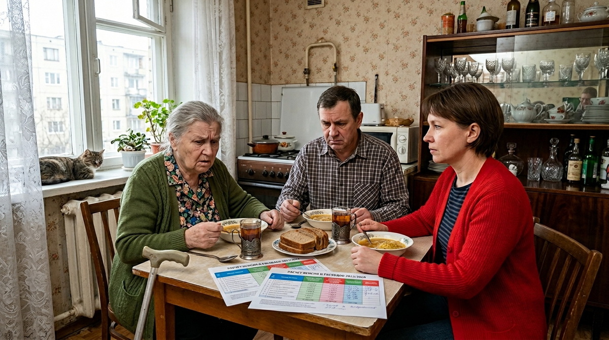 Воскресенье. Мамина хрущёвка пахла щами с кислой капустой — фирменными, которые Галина Петровна варила каждое воскресенье, как службу. Стол накрыт на четверых: тарелки с голубой каёмкой, хлеб нарезан, половник торчит из кастрюли, как перископ. Мать суетилась у плиты, прихрамывая, — трость прислонена к холодильнику, привычная, как часть мебели.