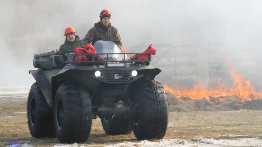 В Азовском районе Омской области прошли командно-штабные учения по защите территорий от сезонных угроз — природных пожаров и весенних паводков. В тренировке участвовали специалисты Главного управления лесного хозяйства, нескольких лесхозов, авиаотделения САУ «Омский лесхоз» и добровольцы. Перед практической частью состоялось заседание комиссии по чрезвычайным ситуациям под председательством заместителя председателя правительства региона Алексея Ромахина. Об этом сообщили в главном управлении лесного хозяйства Омской области. По легенде учений, ландшафтный пожар перешёл в лесной массив и начал распространяться в сторону села Азово. Первыми на место условного возгорания выехали сотрудники Степного лесхоза на автоцистерне и автомобиле УАЗ «Фермер». Площадь пожара к этому моменту составила 10 гектаров, также возникла угроза перехода огня на хвойные молодняки. После запроса дополнительных сил на место направили вездеход «Лесник» и лесопожарный гусеничный трактор для создания минерализованно
