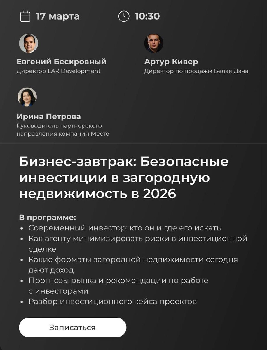 недвижимость в 2026 году». Поделились своим опытом и видением относительно текущего рынка и инвестиций в недвижимость в Санкт-Петербурге и Ленинградской области, а также разобрали несколько кейсов с реальной чистой доходностью в районе 20% годовых на вложенные средства. Спасибо всем, кто принял участие, Вас было чуть больше 80 человек, это очень круто! #Бескровный #ЕвгенийБескровный #LARDevelopment #Запстрой
