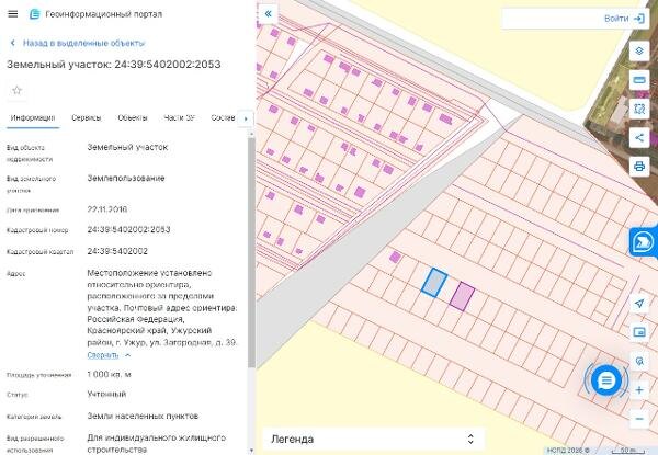Название: Земельный участок с кадастровым номером 24:39:5402002:2053 площадь 1000 по адресу Российская Федерация, Красноярский край