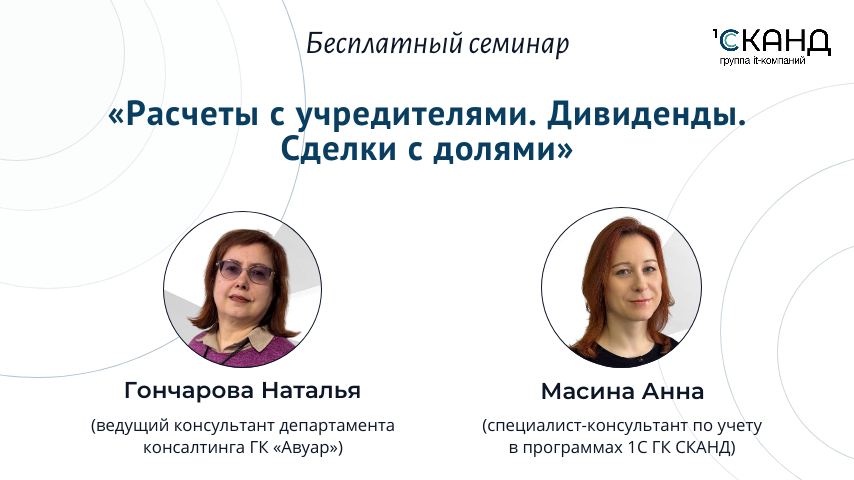 Продолжаем анонс мартовских мероприятий и приглашаем на бесплатный семинар для коммерческих организаций «Расчеты с учредителями. Дивиденды. Сделки с долями». 🗓 20 марта, 10:00–14:00 📍 Челябинск, ул. С. Кривой, 83, оф. 435 💰 Участие бесплатное 📢 Спикеры: Гончарова Наталья Геннадьевна – ведущий консультант департамента консалтинга (ГК «Авуар») Масина Анна Олеговна – специалист-консультант по учету в программах 1С (ГК «Сканд») Разберём самые частые и сложные вопросы, которые возникают у бухгалтеров и руководителей при работе с учредителями. 👉 Успеть зарегистрироваться 👈 📞 По всем вопросам: +7(351)210-35-96 (вн.109) 📧 event@ckand.ru На всякий случай: мы теперь в MAX.