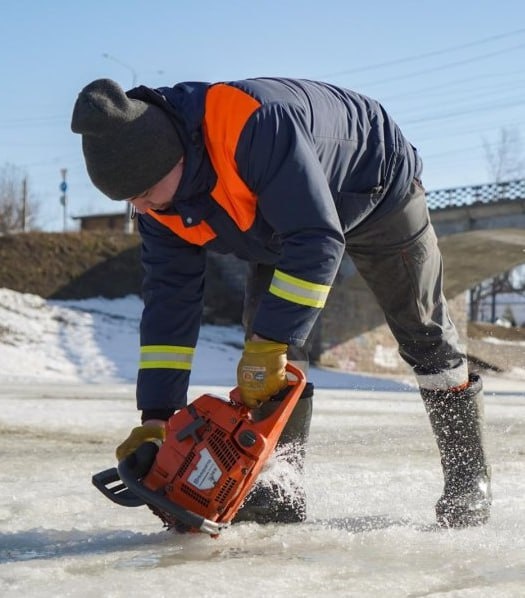 На реке Вологде стартовали ледорезные работы. Специалисты Аварийно-спасательной службы начали с района Октябрьского моста, чтобы безопасно пропустить весенний паводок и снизить риск подтоплений. Толщина льда сейчас 60–70 см, но в некоторых местах уже образовались промоины. Опасные участки отмечены сигнальными лентами: улица Карла Маркса, ул. Луговая, памятник 800-летию Вологды, ул. Ленинградская, устья рек Золотуха и Делёвка. Следующие этапы работ пройдут около пешеходного и строящегося Некрасовского мостов. Выход на лед с 15 марта запрещён — за нарушение грозит штраф 1500–3000 рублей. Спасатели и ГИМС проводят рейды и напоминают о правилах безопасности. В Великоустюгском округе уже начали чернение льда — метод ускоряет таяние за счёт тёмной поверхности. #Вологда #паводок #ледорезныеработы Читайте больше новостей на Новости Вологда Новости Вологда - тут тебе не Москва.