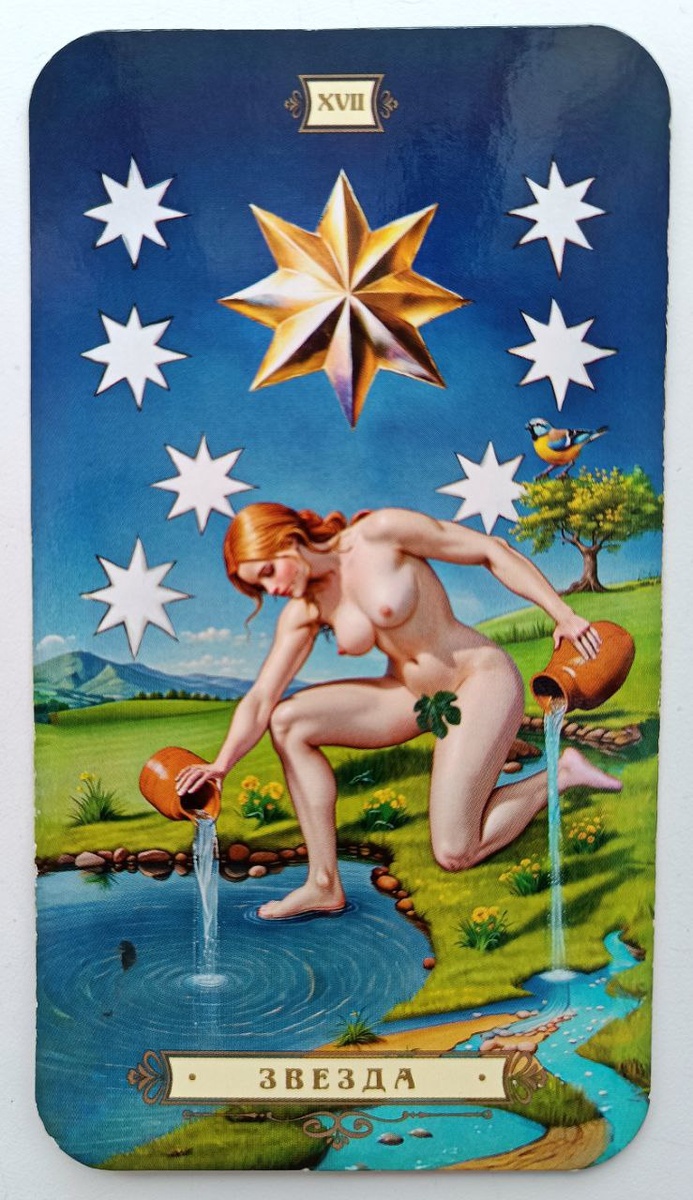 Звезда Сегодня нас ждет удачный и гармоничный день, который поможет воплотить наши желания в реальность. Вселенная предоставит возможность и подтолкнет наши дела в благоприятном направлении для достижения того, чего мы больше всего желаем. Кто-то именно сегодня может получить неожиданную помощь, кто-то исполнение мечты, а кто-то возможность начать все сначала в той или иной области жизни. Не бездействуете сегодня, используете возможность и удачный момент, ведь неизвестно, когда такой подарок вам Вселенная предоставит снова. Карта советует также довериться Вселенной, собственной интуиции, пойти вслед за своим вдохновением и проявить креативность.