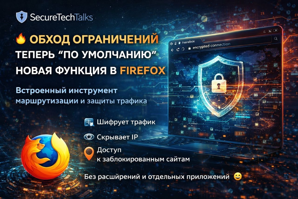 🌐 Блокировки и замедления делают доступ к интернету в РФ всё менее предсказуемым. На этом фоне Mozilla Firefox начали внедрять встроенный инструмент для маршрутизации и защиты сетевого трафика. 🚀 Теперь прямо в браузере появляется функция, которая: 🔹 шифрует интернет-трафик 🔹 скрывает реальный IP-адрес 🔹 позволяет открывать ресурсы с ограниченным доступом То есть можно будет обойтись без расширений с VPN 😉 🧠 Интернет в массы Раньше такие возможности требовали отдельных сервисов. Теперь это просто встроенная опция в браузере. Другими словами, происходит: 🔹 резкое упрощение использования 🔹 массовое распространение технологии 🔹 рост зашифрованного трафика в сети ⚠️ А это не опасно? Несмотря на удобство: 🔹 трафик проходит через инфраструктуру одного провайдера 🔹 уровень защиты зависит от реализации 🔹 остаётся вопрос доверия к сервису Не все пользователи понимают, как именно обрабатывается их трафик и какая информация собирается, что только увеличивает риски... 📦 Куд
