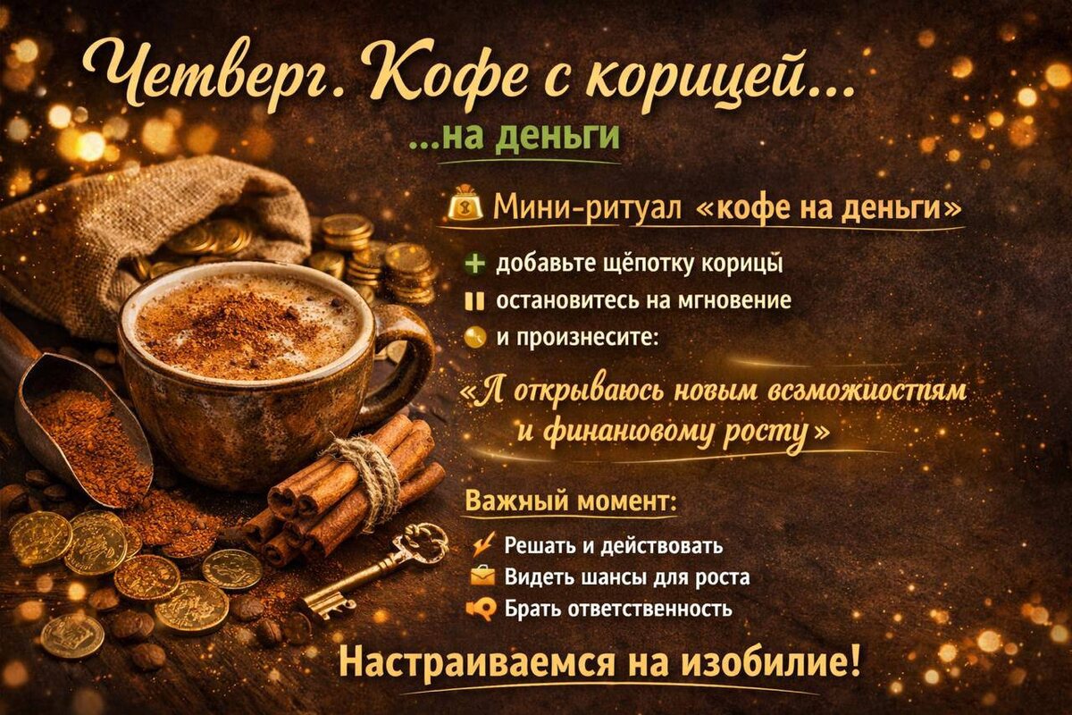 Кофе с корицей… но уже с намерением на деньги Если просто пить кофе — это приятно. А если добавить правильный настрой, это уже маленький ритуал. Корица в энергетике считается усилителем притяжения: она «разогревает» процессы, ускоряет движение и помогает включить энергию изобилия. 💰 Мини-ритуал «кофе на деньги» Когда готовите кофе: ➡️ добавьте щепотку корицы ➡️ на секунду остановитесь ➡️ и мысленно скажите: «Я открываюсь новым возможностям и финансовому росту» Сделайте первый глоток не на бегу, а с ощущением, что вы уже в процессе изменений. ➡️ Важный момент В нумерологии деньги — это не просто «удача». Это всегда: — действия — решения — готовность брать ответственность — и умение видеть возможности Корица не «притянет деньги с потолка», но она помогает включить состояние, в котором вы начинаете: 👉 быстрее принимать решения 👉 увереннее действовать 👉 замечать возможности 😏 И давайте честно… Кофе с корицей — это не магия. Но иногда именно с него начинается день, которы
