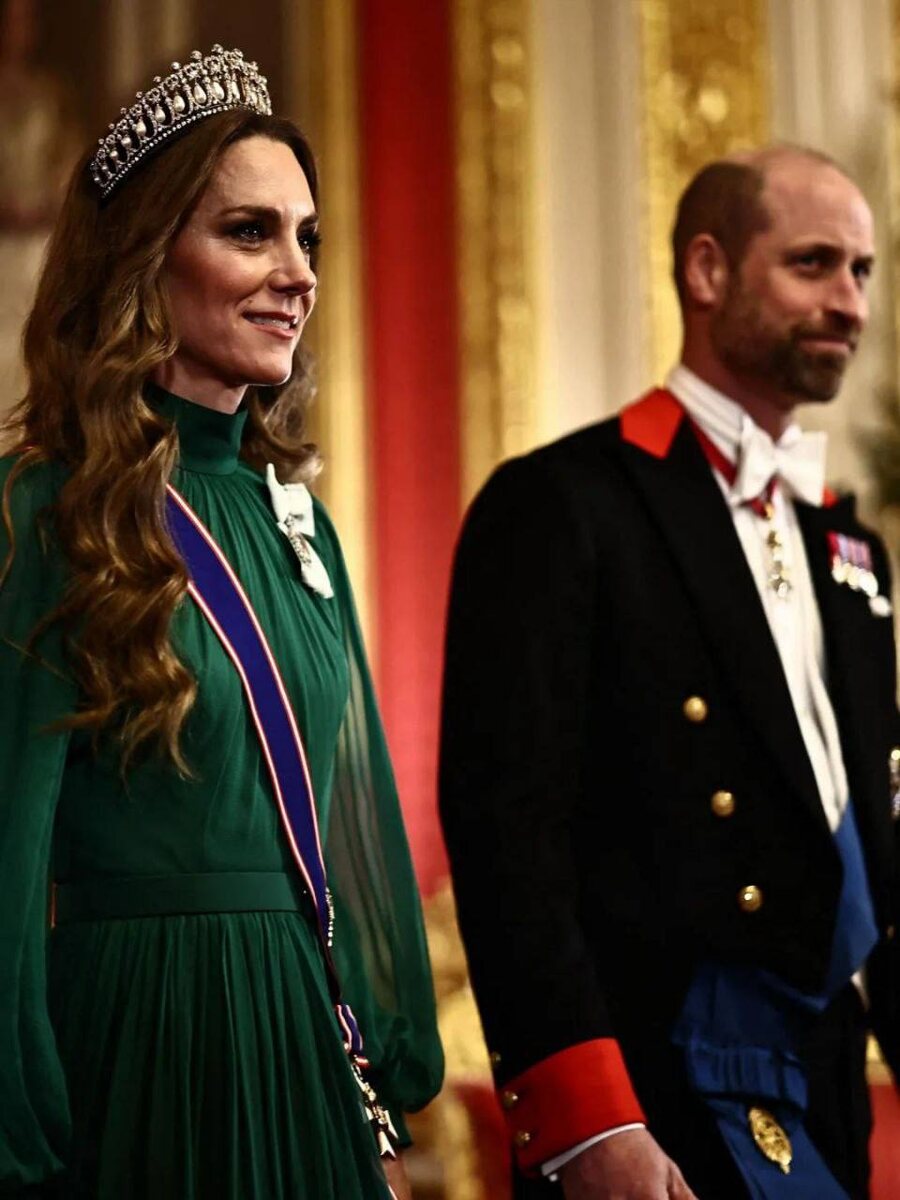 Кейт Миддлтон на государственном банкете в Виндзорском замке по случаю визита президента Нигерии в платье в цветах нигерийского флага от