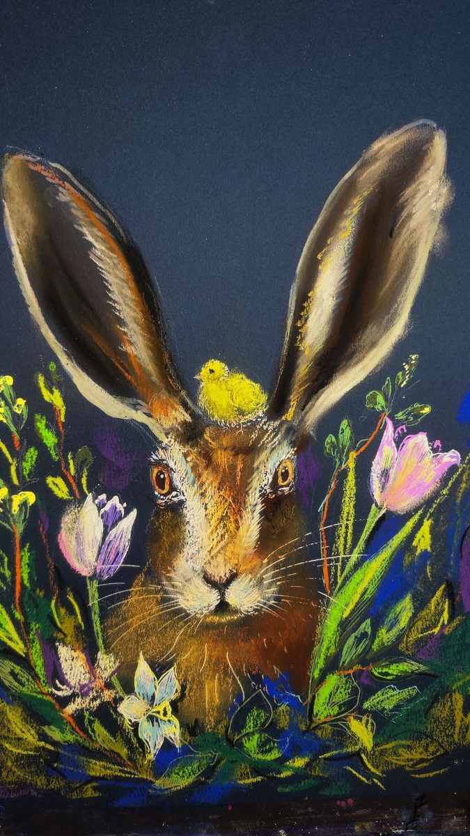 Но паралельно я буду реанимировать свою группу в ВК и устанавливать Макс, там я еще не была😁. И анонс на эту субботу, 21 марта У меня случилось предпасхальное настроение, хотя слишком заранее, и родился заяц с цыплёнком на макушке 😁по многочисленным просьбам детей будем работать сухой пастелью. Хотя, я ввела и акриловые ручки, и акриловые маркеры. Продолжительность 2-2.5 часа, стоимость 1200 руб.