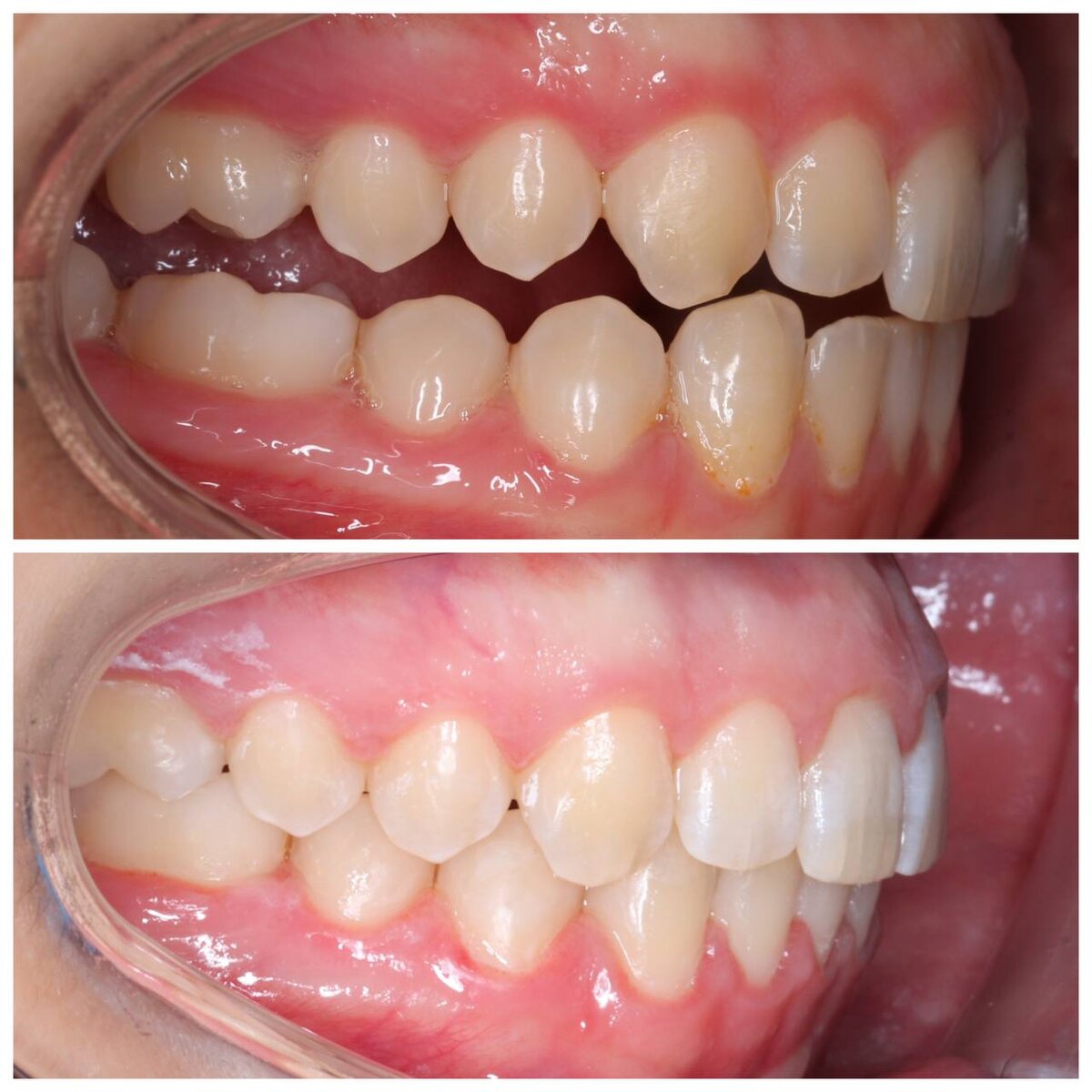 ? Пациент пришёл ко мне на долечивание с небольшим осложнением — видно на фото «до», где рот закрыт. 8ки прорезадись в высоту сплинта и не давали закрыть рот. Но для меня это даже плюс! Дополнительная опора 👍🏻 Схема лечения: брекеты, затем сплинт и резинки для смыкания зубов. Весь процесс занял полтора года. Что важно понимать про лечение ВНЧС? Заболевание может возникнуть даже у людей с идеально ровными зубами. Факторов, влияющих на сустав, множество — и далеко не все из них в зоне контроля ортодонта. Но в данном случае нам удалось улучшить позицию в суставе и укрепить гипермобильные связки. Более того, важно помнить: дисфункция ВНЧС — это комплексная проблема. Иногда требуется работа не только ортодонта, но и других специалистов. Пациент доволен результатом, функция сустава восстановлена.👌🏻