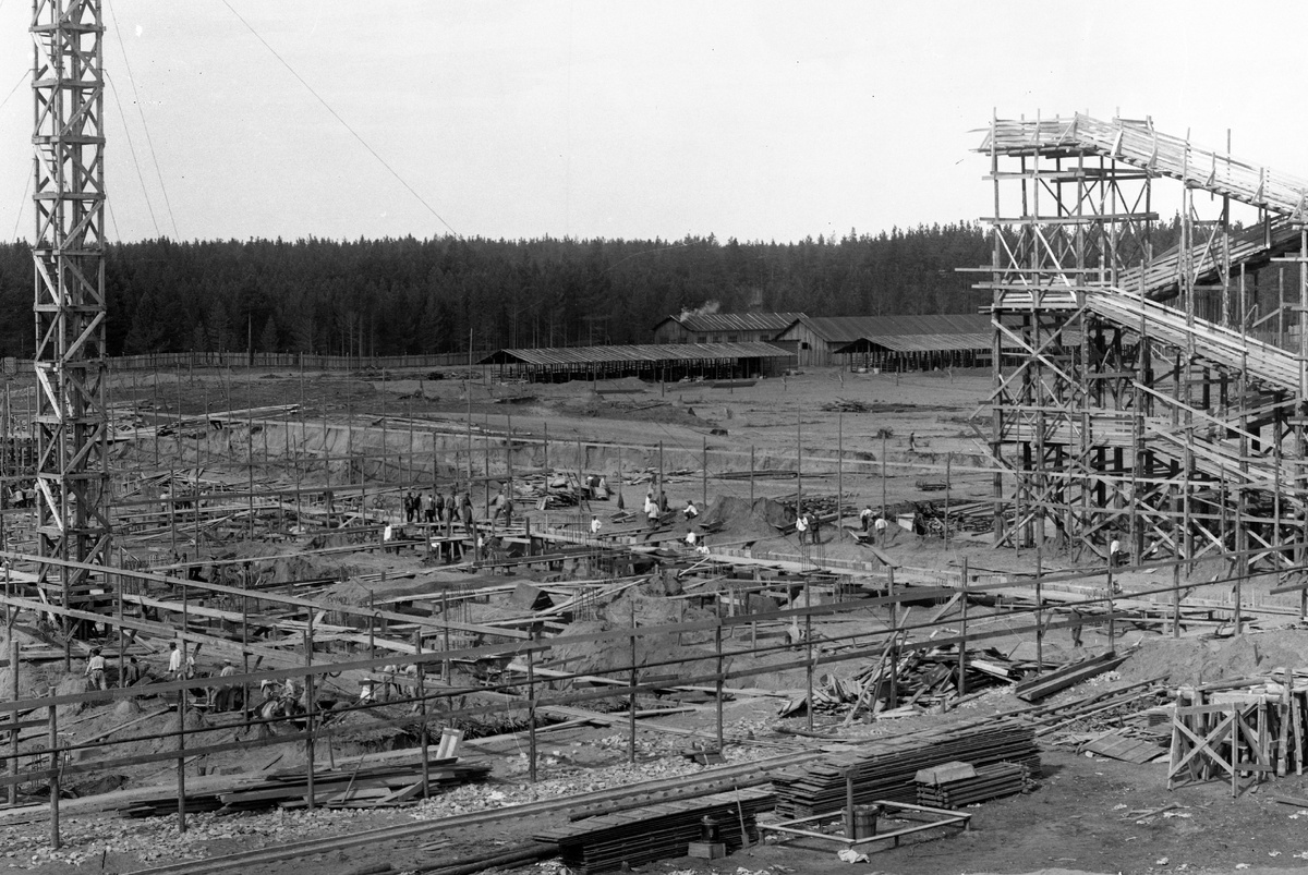Строительные работы на площадке КЦБК. 1930-е годы. Из фондов Краснокамского краеведческого музея.