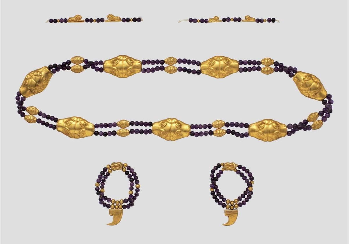 Золото, аметисты. Найдены в гробнице принцессы Ситаториунет, дочери фараона Сенусета II.