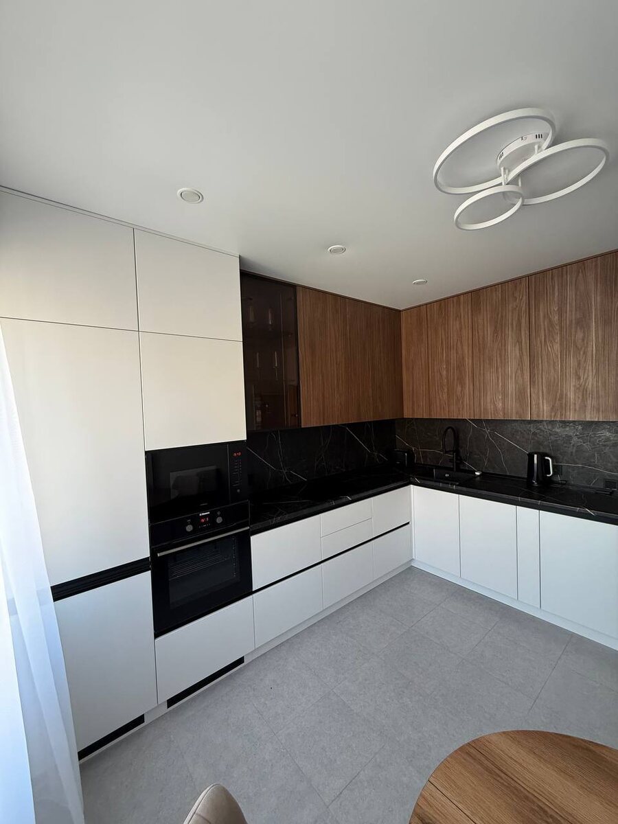 🔥 В этом проекте соединили контраст и тепло: фартук под чёрный мрамор создаёт выразительный акцент, верхние фасады под дерево добавляют естественности, а белые нижние тумбы делают пространство светлым и аккуратным Продуманное наполнение с большим количеством ящиков помогает удобно разместить всё необходимое 🤍 Мы все делаем «под ключ»: • Бесплатный замер • 3D‑проект • Работа по договору • Доставка и сборка Хотите такую кухню? Свяжитесь с нами❤️ 📱Telegram - консультация