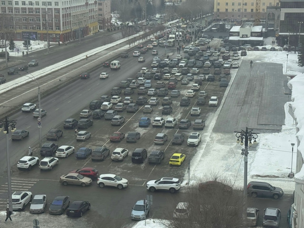 Вот такая обстановка сегодня на площади Советов 😵 Бывала ли здесь когда-нибудь такая огромная парковка?