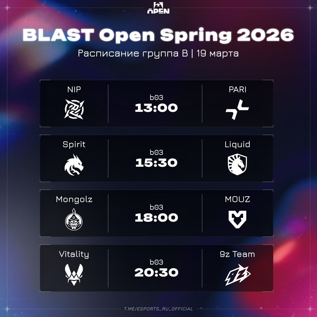 🗓 Расписание второго игрового дня групповой стадии BLAST Open Spring 2026