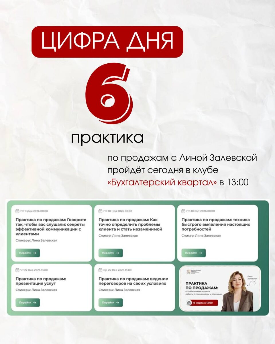 🎯 Коллеги, один из самых неприятных моментов в продажах — когда клиент говорит: «Дорого», «Я подумаю» или просто «Нет, мне это не нужно». И тогда у многих опускаются руки, но именно здесь и лежат ваши потенциальные договоры на сотрудничество! 😉 Уже сегодня мы встречаемся с участниками клуба "Бухгалтерский квартал" на практике по продажам, чтобы отработать техники работы с сомнениями и отказами. Чему будем учиться: ✅ Отвечать так, чтобы не звучать как робот; ✅ Превращать отказ в конструктивный диалог; ✅ Перестать принимать «нет» на свой счет. И не переживайте, если вы «с нуля» и не очень понимаете что нужно делать или пропустили прошлые встречи. У вас будет вся необходимая теория и вводные данные для отработки. Практика — это безопасное пространство, где можно спокойно учиться и пробовать без стресса и оценок, с поддержкой коллег. Встречаемся сегодня, 19 марта, в 13:00 мск А если вы пока еще не в клубе, то пишите в комментариях, с какими самыми «вредными» возражениями встречал
