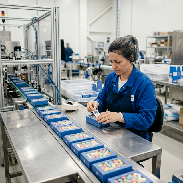 С 1 июля 2026 года каждая упаковка драже обязана нести DataMatrix-код в системе «Честный ЗНАК». Леденцовые «морские камешки», орехи в шоколадной глазури, желейные конфетки с кислой обсыпкой — всё это сахаристые кондитерские изделия, и без кода их нельзя ни в сеть, ни на маркетплейс. Штраф — до 300 000 ₽ с конфискацией, при крупном обороте — уголовная ответственность. Коротко рассказали здесь, подробно разобрали на нашем сайте в статье о маркировке драже. 👉 Обратитесь в «ГК Единый Стандарт» — мы поможем оформить декларацию ТР ТС на кондитерские изделия, чтобы не тратить недели на документы. Ключевой вопрос классификации — доля центра по массе: Ошибка в классификации = недействительная декларация = штраф + конфискация. Проверьте рецептуры до регистрации. Не маркируются: весовое драже, фасуемое в торговом зале; экспорт за пределы ЕАЭС; БАДы в форме драже. Драже — это пакеты по 40–100 г. Код DataMatrix нужно уместить на ограниченной площади: Минимальный набор: термопринтер + сканер — от