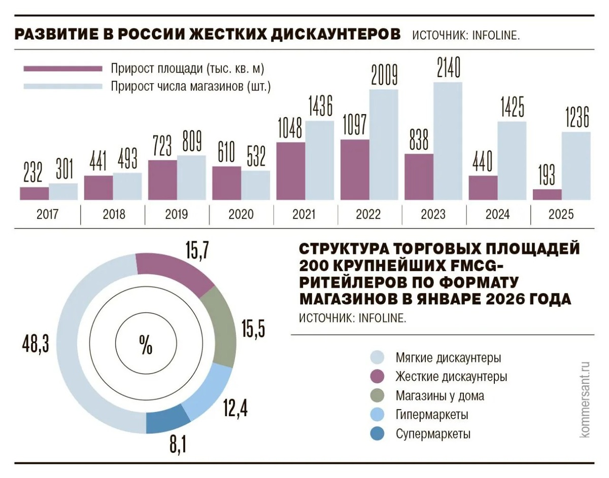 Рынок жестких дискаунтеров в России в 2026 году покажет худший рост за 8 лет: всего 19,1