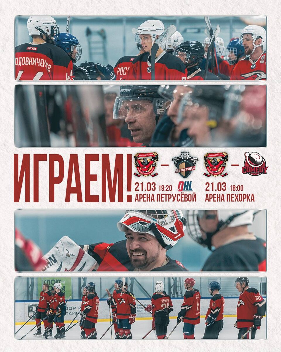 🔥 21 марта состоится вторая игра 1/4 финала ОХЛ, которая станет решающей для нашей команды Как никогда нужна ваша поддержка! 🦅 Параллельно другой состав проверит свои силы в товарищеском матче против ХК «Камеди» на Пехорке ⚡️ 🦅 Ястреб в сердце 📱 Мы в VK