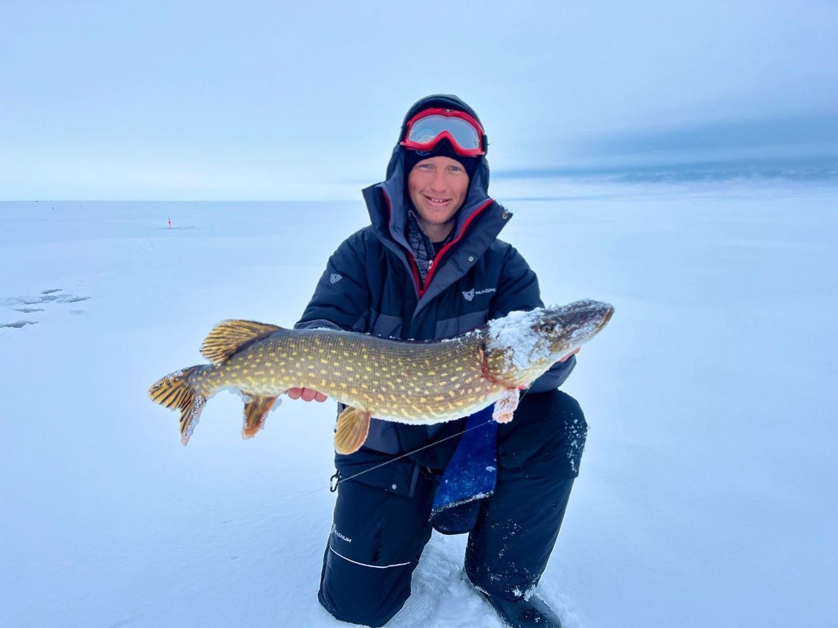 ! Павел Дёмкин делится своими впечатлениями о ловле зубастой на жерлицы. Главные спортивные старты сезона закончились, появилось время для обычных рыбалок. Семён Смирнов уговорил съездить на жерлицы, лет 6 точно на них не ловил, все-таки не совсем моя рыбалка. Чуть припозднились и заканчивал выставлять флаги, когда уже полностью рассвело. Первый флаг загорелся при выставлении последних жерлиц и первая щука на льду. Как я и ожидал, феерии поклевок не было, щука вся в пиявках, на вываживании вялая. Тем не менее за утренний выход у меня две и у Сёмы одна, да по несколько холостых загаров. Спустя пару часов отъехали в сторону попробовать половить окуня, но чтобы было возможно контролировать сработки жерлиц. Здесь стало повеселее, бодрые окуньки поклевывали на безмотылку. Тем времени у Сёмы флаг...кричит: "багор", но пока я подъехал, он уже сумел завести рыбу в лунку - достойная щука в районе 5 килограмм. Сразу и у меня флаг, но сработка холостая, пока менял живца, загорается еще один