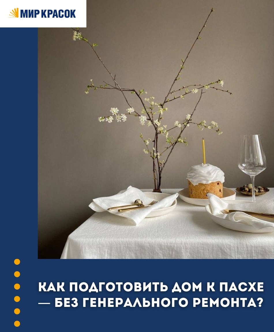 ». Это про ощущение света, чистоты и обновления. И чтобы дом действительно чувствовался свежим, не нужно устраивать капитальную перестройку. Достаточно правильных акцентов. 🕊Начните с воздуха. Весной особенно важно освободить пространство: убрать лишние детали, освежить текстиль, впустить свет. Иногда уже одно это меняет атмосферу сильнее, чем покупка новых вещей. 🎨Второй шаг — цвет. Пасха всегда про мягкость и свет: тёплые белые, сливочные, светло-зелёные, оттенки молодой травы, пыльная роза, небесно-голубой. Даже небольшое обновление — перекрашенный подоконник, освежённая дверь или одна акцентная зона — делает интерьер визуально чище и спокойнее. 💡Третий момент — поверхности. Стены, которые слегка «устали» за зиму, можно аккуратно освежить. Весна — идеальное время для этого: свет честный, температура стабильная, краска ложится предсказуемо. Даже один обновлённый элемент меняет общее ощущение дома. И, конечно, детали🌲 Живые цветы, керамика, светлые скатерти, свечи, ветки вербы