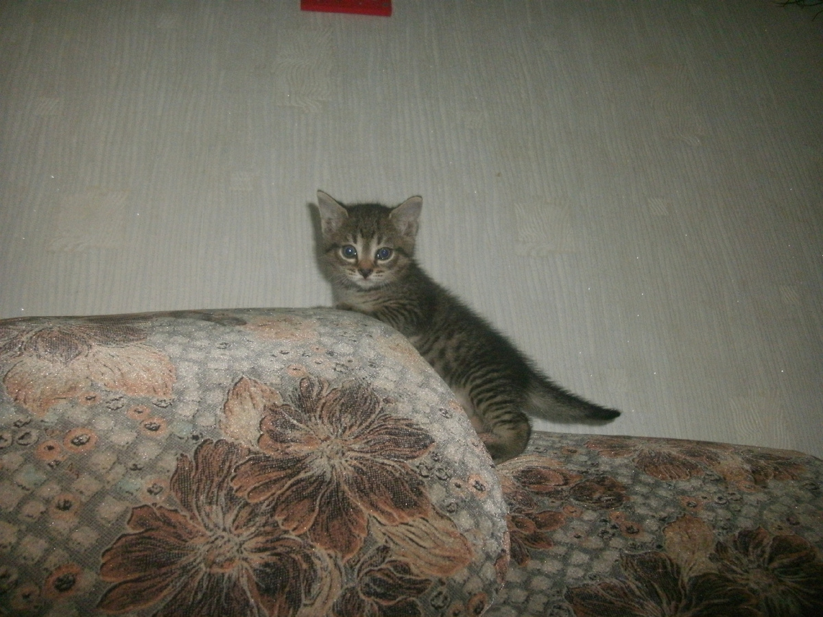 Фрося появилась у меня котёнком, с голубыми глазами и хвостом морковкой. На закрытой территории, где бегали собаки, в бизнес-центре из 5 этажей, на самом верху был небольшой стеклянный купол в виде пирамиды. Вот на этой стеклянной пирамиде в один из дней начал мяукать котёнок. Ни мамы кошки, ни других котят так и не нашли. Какие-то мужчины, чуть ли не с риском для жизни ее сняли. В пятницу женщина из бухгалтерии ходила по кабинетам и уговаривала кого-нибудь забрать котёнка. Фрося и есть то не умела, кормили из пипетки. А в пятницу собирались оставить её в отделе одну - помрёт так помрёт. Я не выдержала и забрала. Мне ехать домой на метро через весь Питер. Зашла в зоомагазин, там мне сказали, что это девочка и продали переноску, туалет и корм. Вот таким составом я и поехала в переполненном метро. Ту переноску Фрося любила до конца и часто спала в ней. В то время я жила в старенькой хрущевке, полы были паркетными, с пустотой внизу. И по всему дому, по этим пустотам, бегали маленькие мы