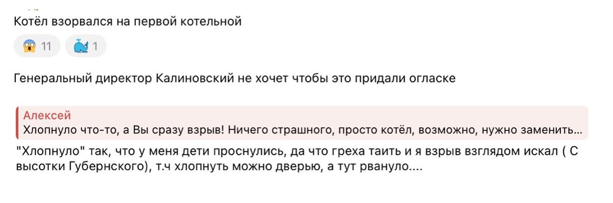 ⚡️ Жители Чехова сообщают, что слышали “хлопок” на котельной №1, снабжающей теплом половину города. Официальная информация отсутствует.