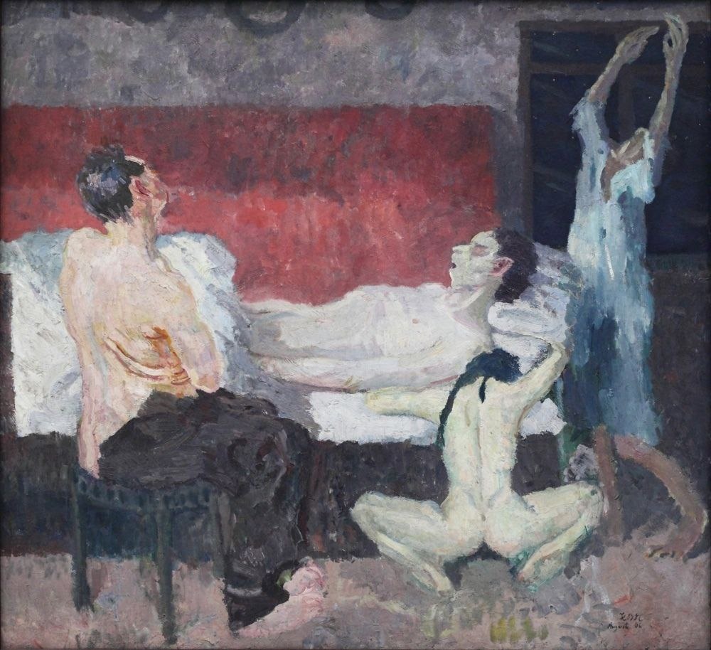 🎨 Знакомьтесь с "Большой сценой смерти" от Макса Бекмана, созданной в 1906 году! Это не просто картина, а настоящая драма на холсте