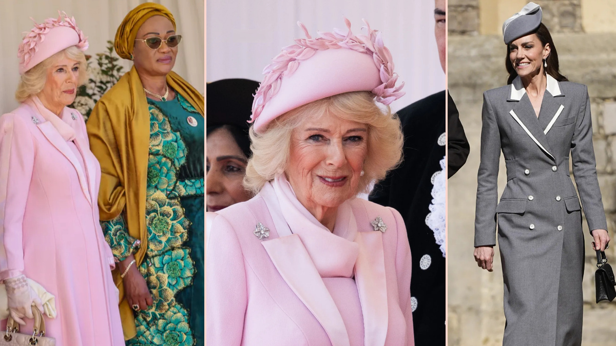 Король и королева, безусловно, были одеты соответственно случаю, чтобы приветствовать президента и первую леди. Королева Камилла надела полностью розовый наряд, включая платье-пальто от одного из своих любимых брендов, Fiona Clare, которое она дополнила шелковым шарфом и шляпкой от Philip Treacy, украшенной аппликациями в виде цветов.