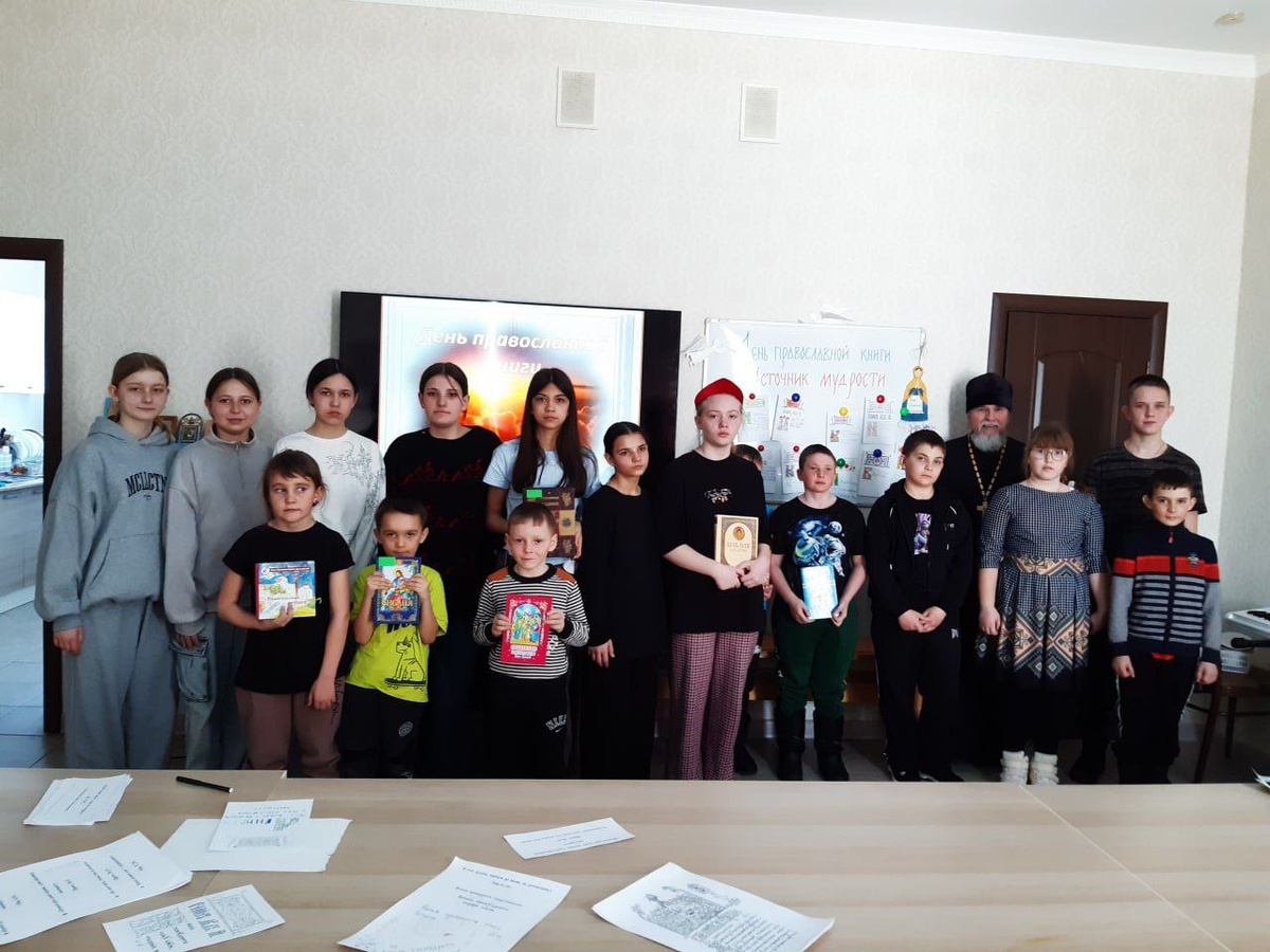 ». День православной книги в с. Рыбкино 15 марта 2026 года в воскресной школе «Благовест» при храме Архистратига Божия Михаила села Рыбкино Новосергиевского района прошло занятие «Источник мудрости», посвященное Дню православной книги. Мероприятие состоялось в рамках сотрудничества храме Архистратига Божия Михаила с Сельской модельной библиотекой и Сельским домом культуры. Дети услышали рассказ о самой главной Книге — Библии. Бог открывает Себя каждому из нас естественным способом через красоту и гармонию видимого нами мира, и еще более являет Себя Бог в Божественном Откровении, которое дано нам в Священном Писании и Священном Предании. Библия является источником мудрости, и мы часто даже не задумываемся о том, что значительная часть распространенных крылатых выражений берет свое начало в Книге Книг. На занятии школьники вместе с взрослыми рассуждали о некоторых таких выражениях. В творческой части занятия дети записали цитаты из Священного Писания, украсив текст узорными заста