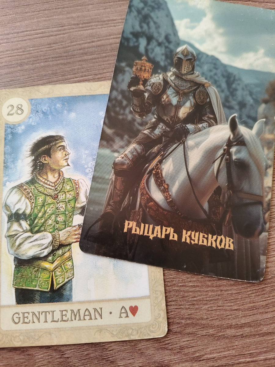 На предстоящей неделе, согласно раскладу карт Ленорман и Таро, в центре внимания окажется сочетание карты "Мужчина" (Ленорман) и Рыцаря Кубков (Таро). Этот союз предвещает период, наполненный вниманием к мужской фигуре, его эмоциональным миром и вероятными новыми романтическими или дружескими начинаниями.