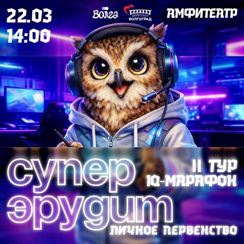 В Амфитеатре 22 марта 2026 года сойдутся участники битвы «Суперэрудит». В формате интеллектуальных турниров с соперниками и даже с ИИ сразятся подростки и молодежь в возрасте до 35 лет. Победителей в личном зачете по итогам серии игр «IQ-марафон – Город знаний-2026» определят в личных зачетах: «Школьном ювенальном» (6-7 классы), «Школьном юношеском» (8-9 классы), «Школьном юниорском» (10-11 классы и 1-2 курсы СПО), «Студенческом» (вузы и старшие курсы СПО) и «Молодежном». Начало – в 14.00. Зарегистрироваться можно на официальной странице "ВКонтакте" организаторов – Центра развития креативных индустрий «Волга».