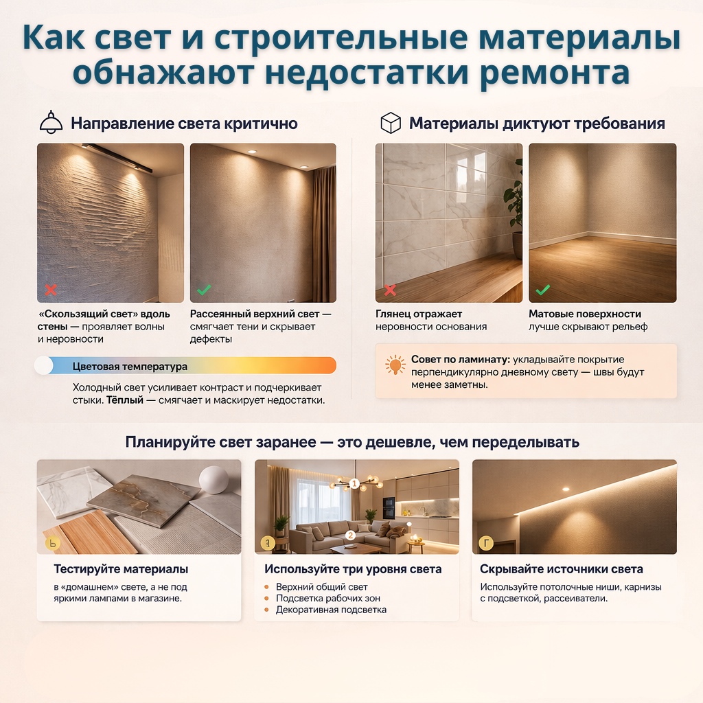 💡Как свет и строительные материалы обнажают недостатки ремонта💡
