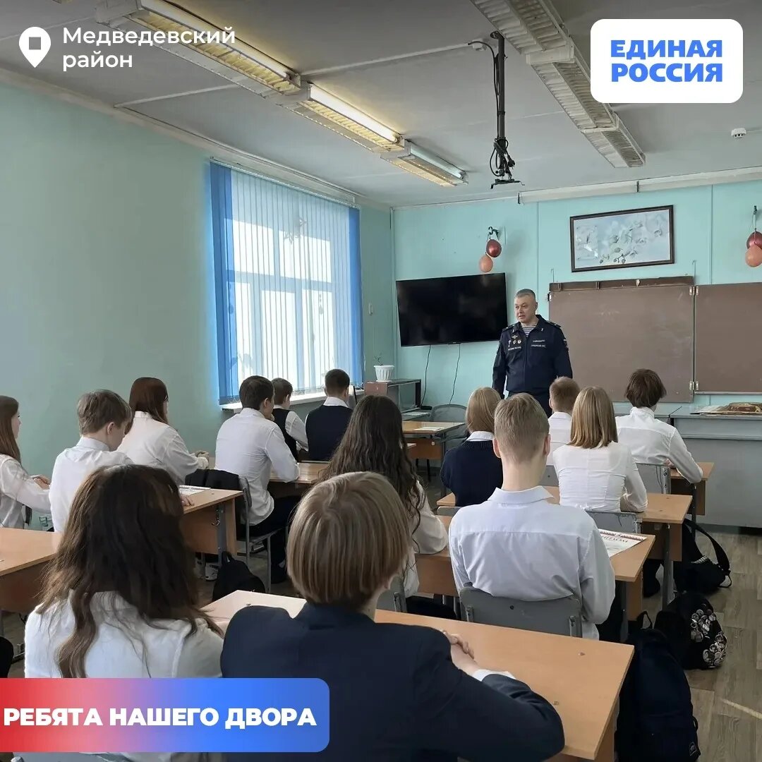 В Медведевской средней школе №2 в рамках регионального партийного проекта «Ребята нашего двора» прошла встреча с участником кадровой программы «Герои Марий Эл. Талешке – влак» Эдуардом Купсольцевым. Эдуард Юрьевич принял участие в торжественной линейке, а затем в рамках занятия «Разговоры о важном» провёл для школьников Урок мужества. Он поделился опытом военной службы, рассказал о буднях российских солдат и важности дисциплины — как в армии, так и в повседневной жизни.
