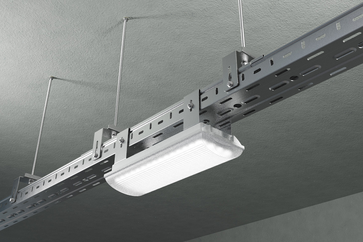 Маленькое изделие – новые возможности. Мы пополнили ассортимент аксессуаров для металлических лотков подвесами для монтажа светильников. Подвесы для светильников позволяют устанавливать осветительные приборы непосредственно на металлические лотки без нарушения целостности трассы. Подвесы Промрукав подходят как для лотков смонтированных с крышкой, так и без неё. П-образная деталь надевается на борт лотка и фиксируется через боковые отверстия шириной 7,2 мм. Для крепления самих светильников в основании подвеса предусмотрены отверстия шириной 8 мм. Подвесы изготовлены из металла толщиной 1 мм, что обеспечивает необходимую жесткость конструкции. В ассортименте представлены различные исполнения под разные условия эксплуатации: - Подвесы в исполнении INOX (марки стали AISI 304, 316 и 409) изготавливаются из нержавеющих марок стали, обладающих высокой коррозионной стойкостью к агрессивным средам, износостойкостью и высокими прочностными показателями, что позволяет применять изделия в условия